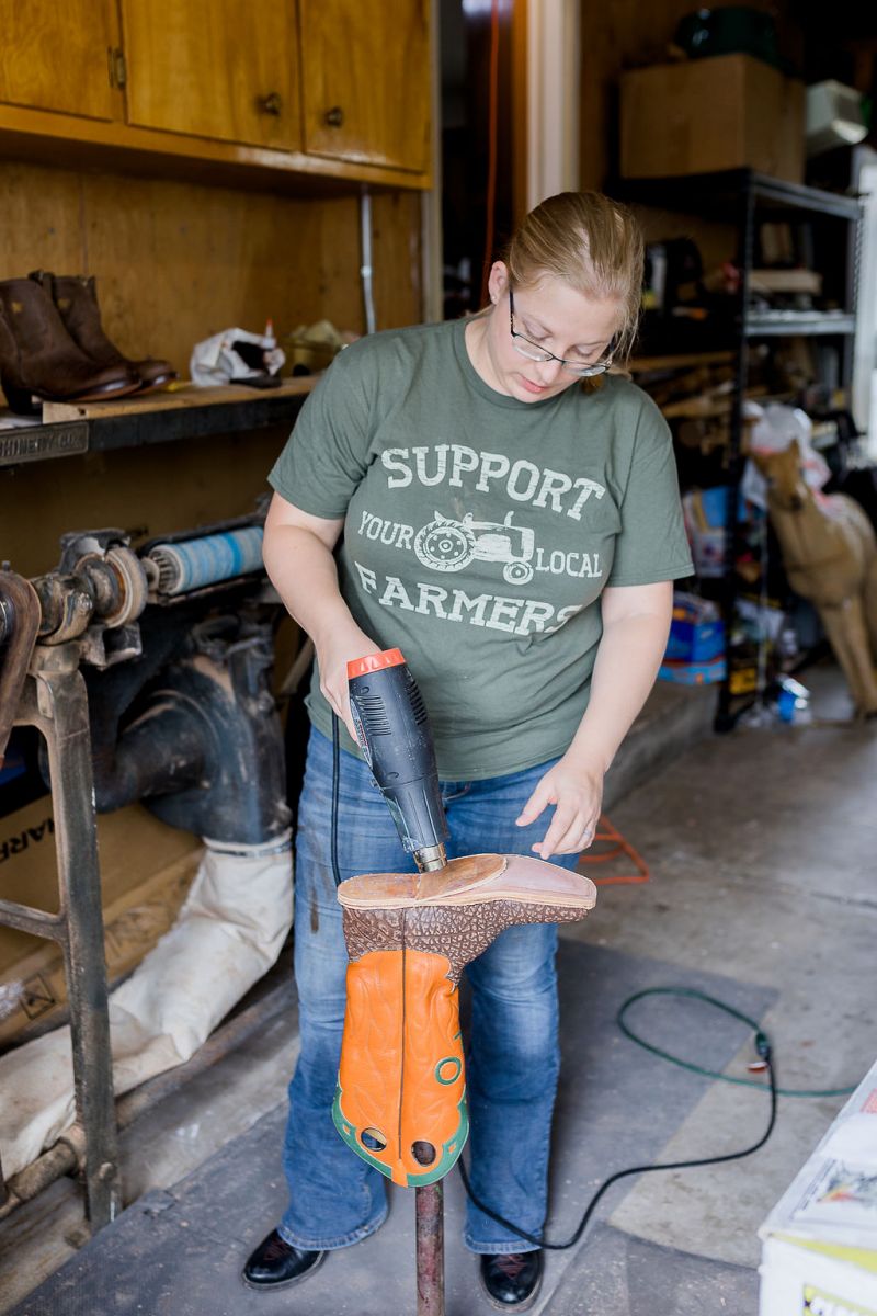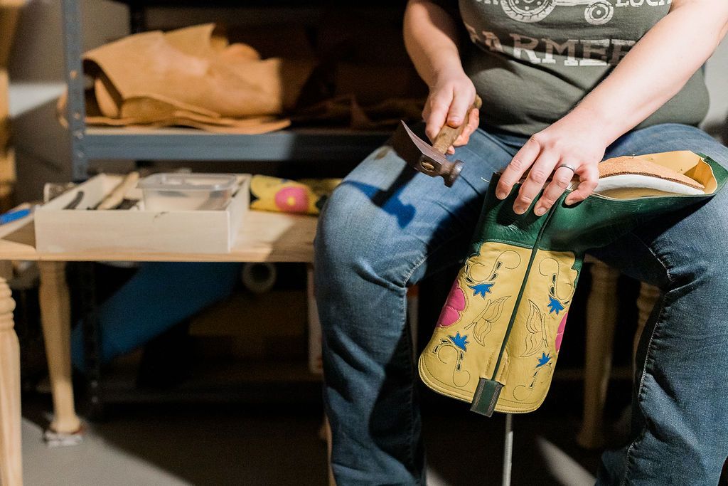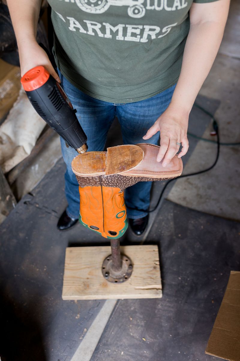 We will take your boot and stretch it around a last to shape the leather, stretch it, and give the shoe form.