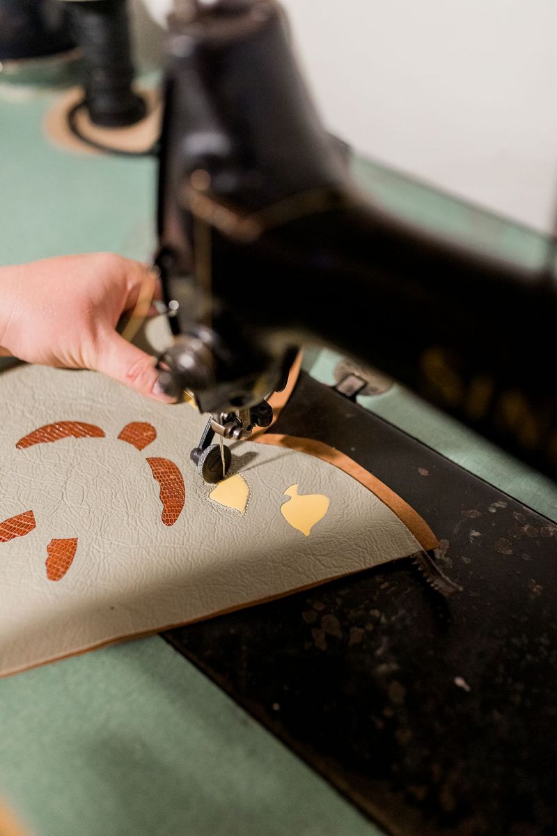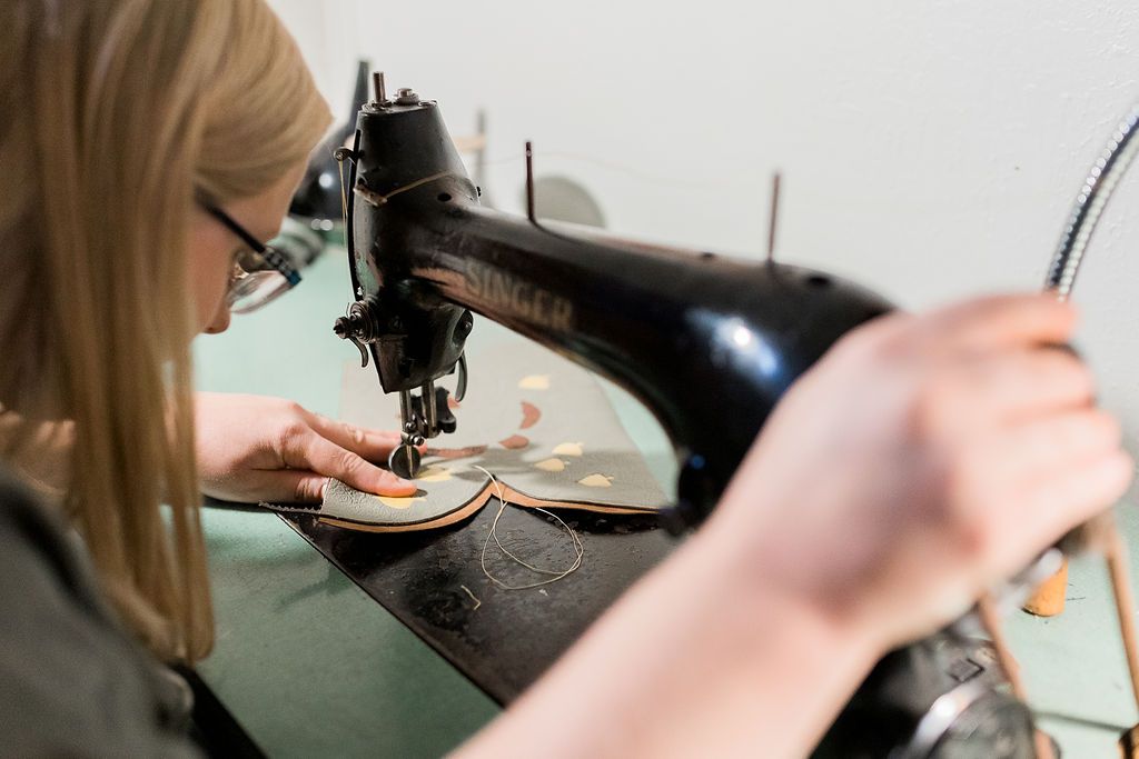 After all the leather pieces are cut out, we start assembling and the sewing starts. All of our stitching is done by hand, never using automated machines.
